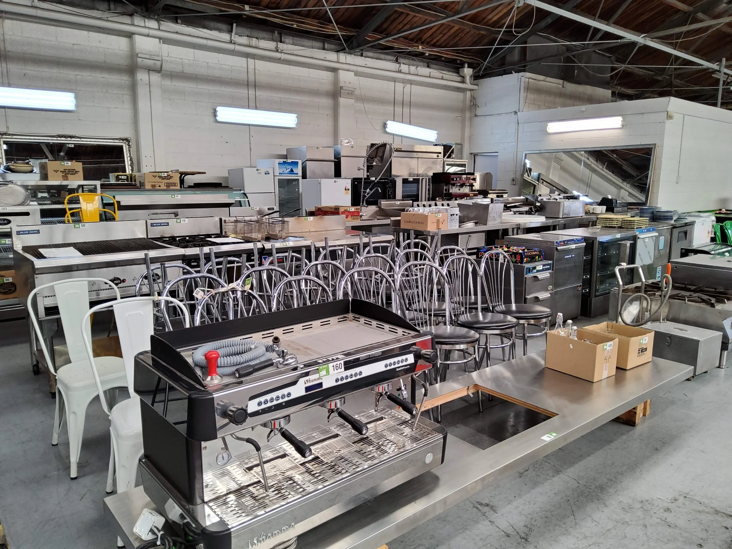 audio equipment, pool table, mirrors, pie warmers, dishwashers, freezers, espresso machine,